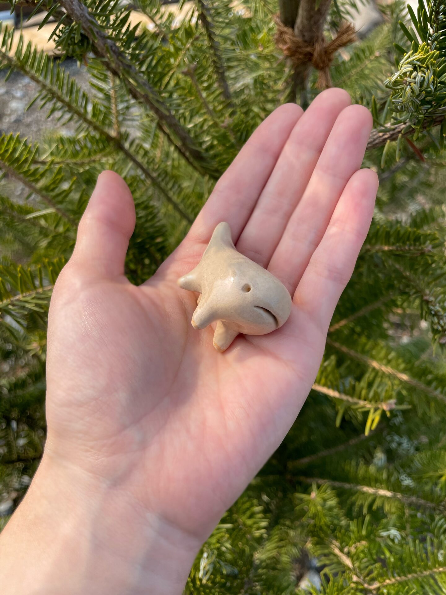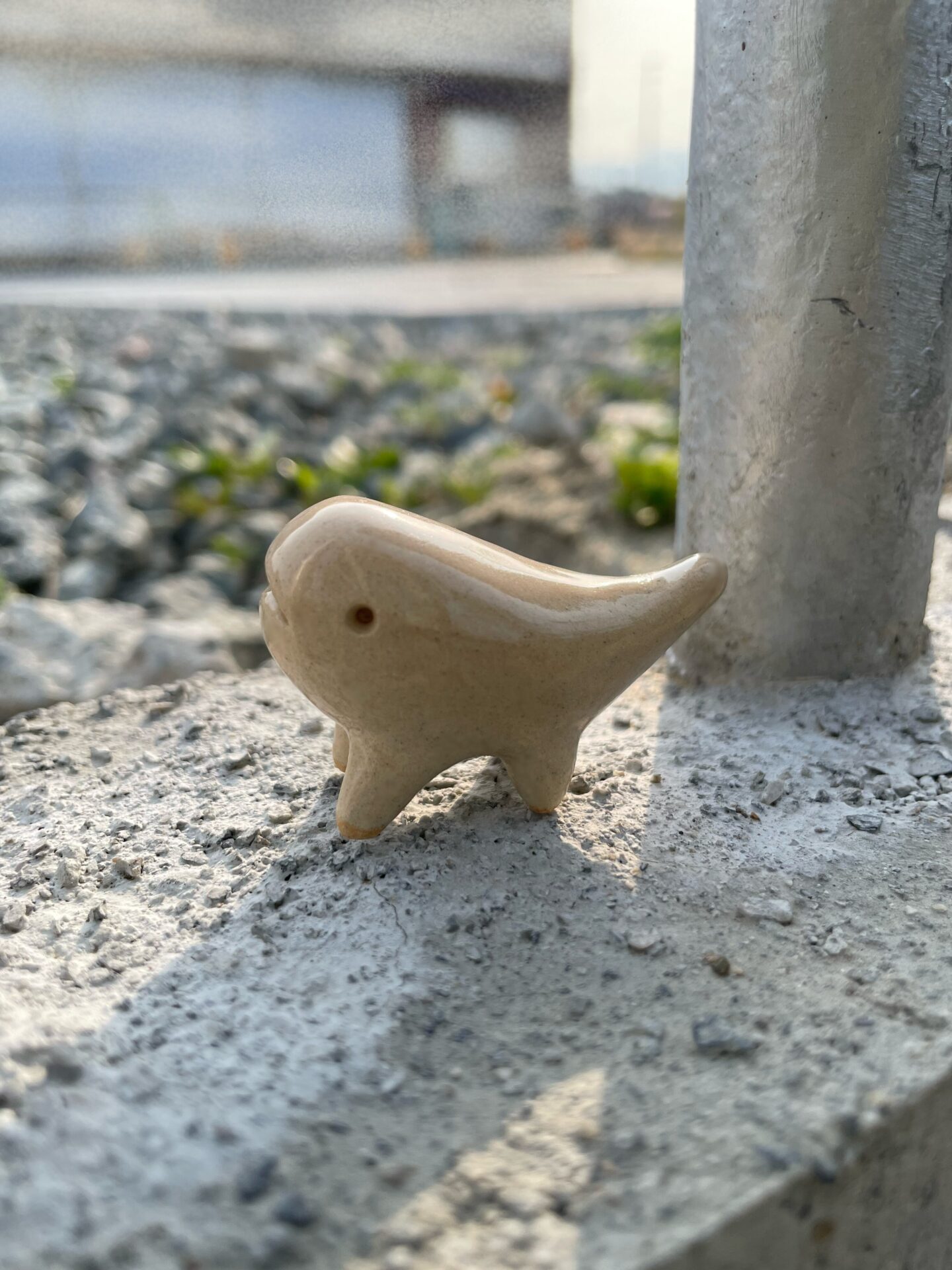 手のひらサイズでとってもかわいい。きょとんとした表情が特徴的。オンライン販売ではなるべく写真に近い形の子をお届けしますが、個体差様々です♪クリームっぽい色で、つるつるした触り心地。なでると気持ちいいです◎